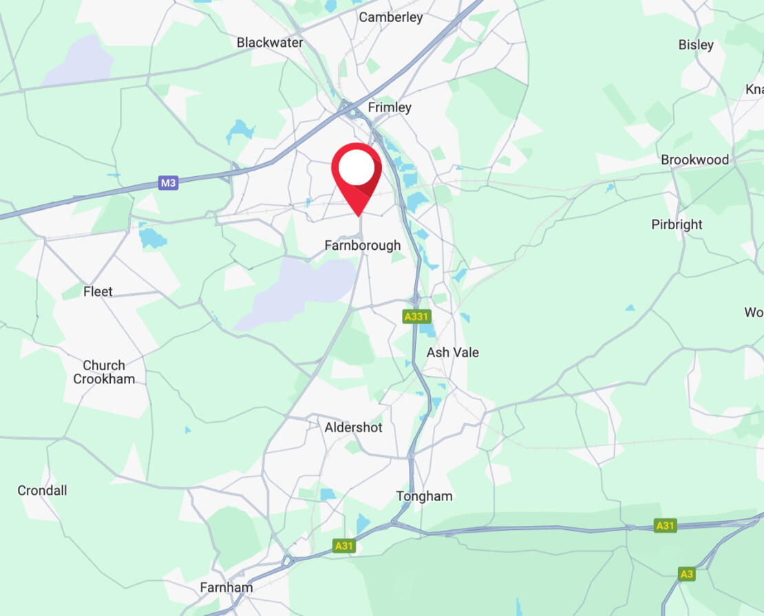 Ash Vale | Mytchett | Cove | Hawley | Aldershot | Frimley | Deepcut | Normandy | Pirbright | Fleet | Brookwood | Farnham | Camberley | Worplesdon | Crondall | Bisley | Compton | Elstead | Bagshot | Woking | Guildford | Basingstoke | Winchester |